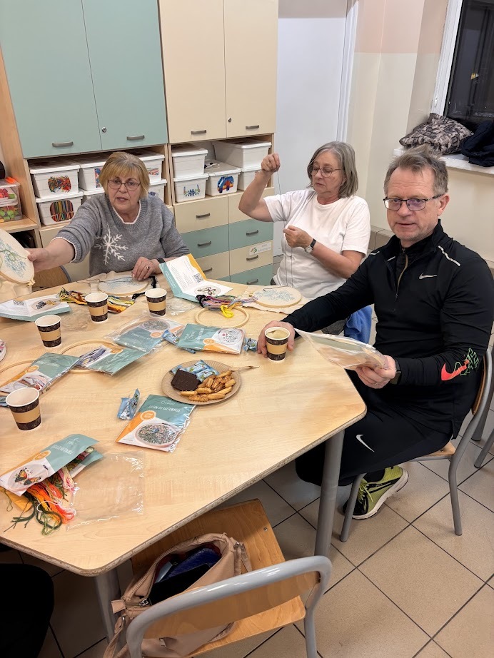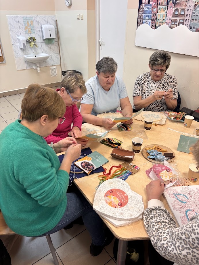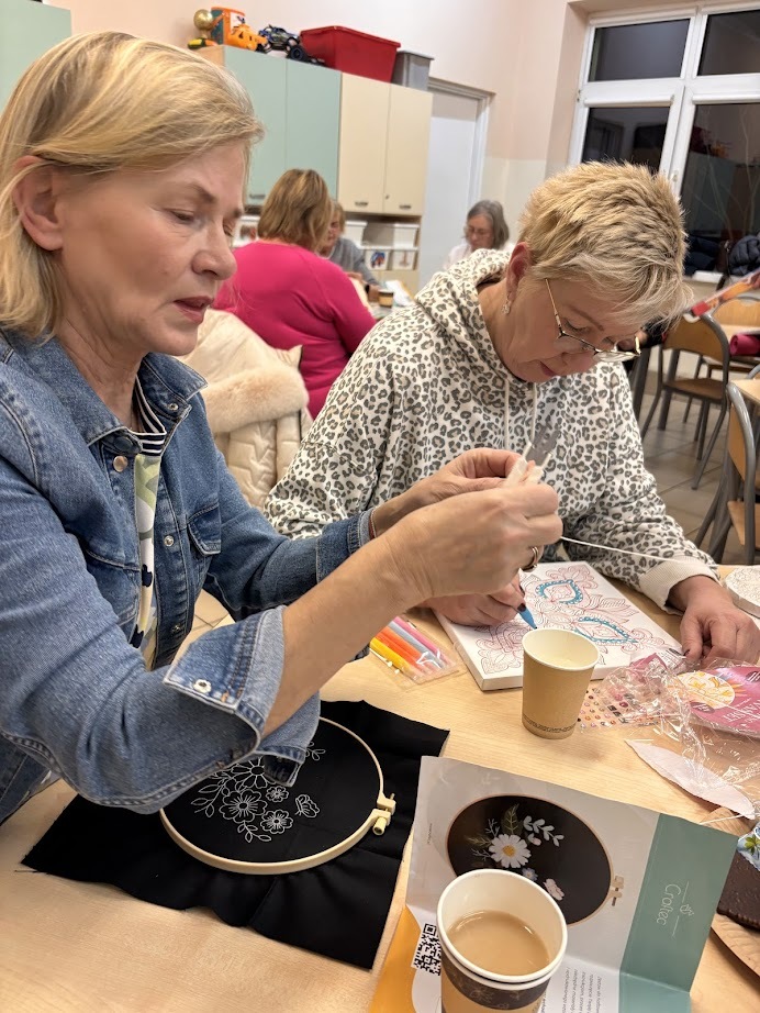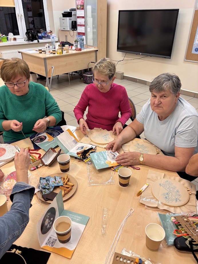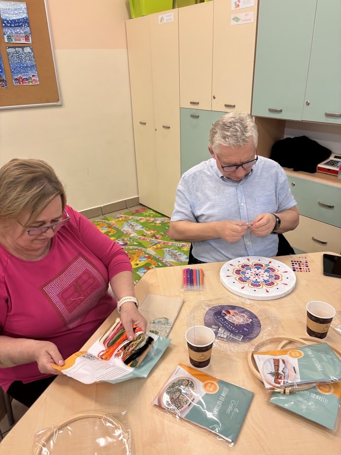 A gdy przyszła pora na kreatywność – seniorzy pokazali, co potrafią! Na warsztatach haftu powstawały piękne, precyzyjne prace, podczas zajęć mydlarskich unosiły się cudowne zapachy, a tworzenie motanek wciągnęło wszystkich bez reszty. Było też malowanie – kolory, pomysły i wyobraźnia nie miały żadnych ograniczeń.