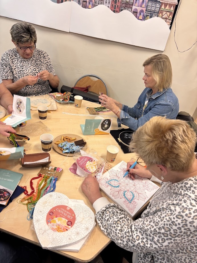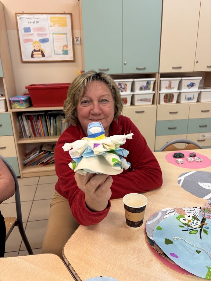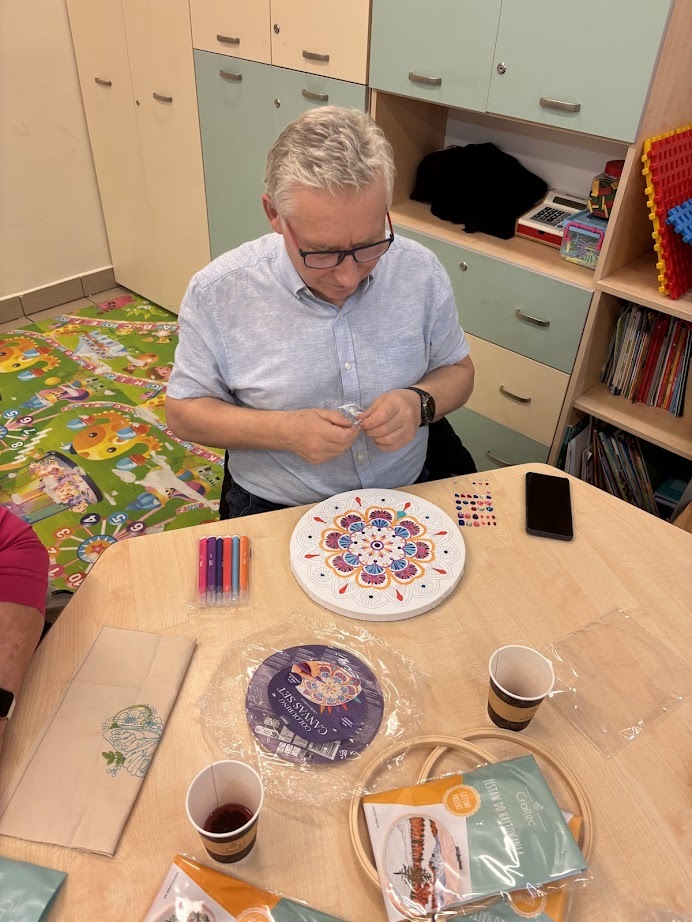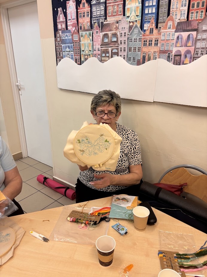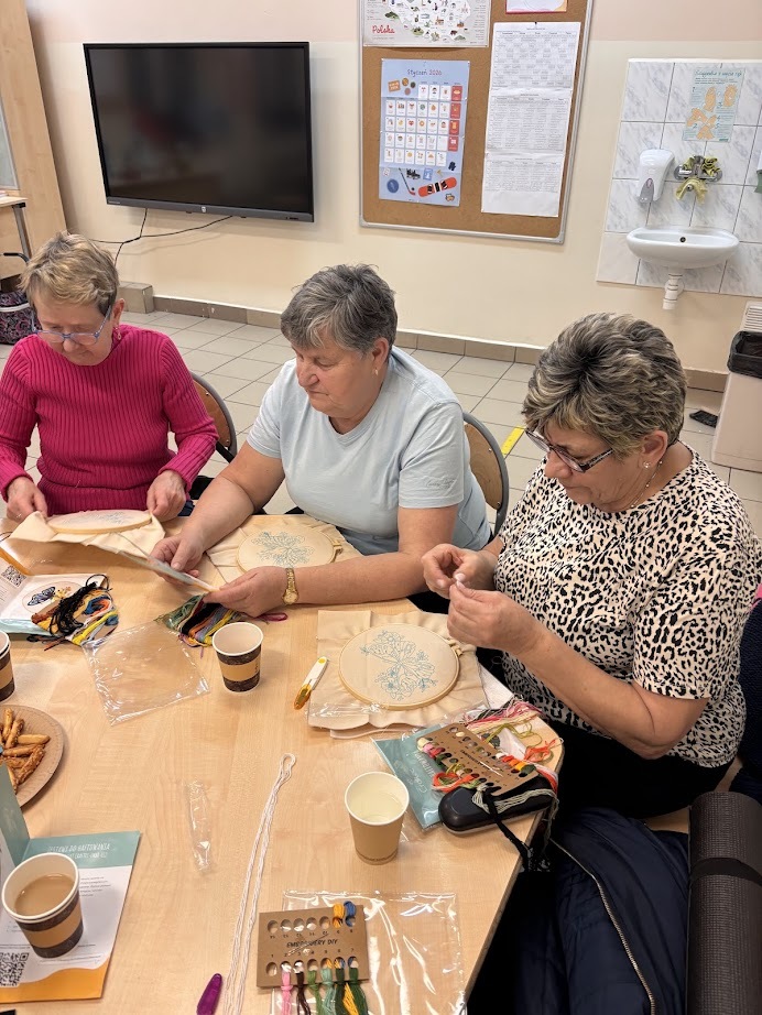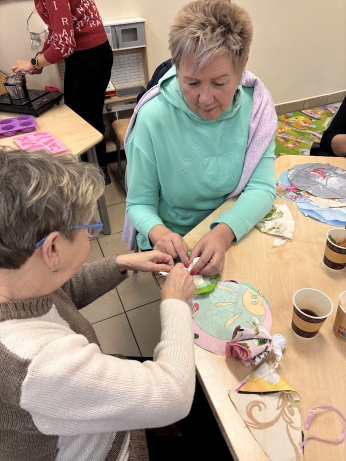 A gdy przyszła pora na kreatywność – seniorzy pokazali, co potrafią! Na warsztatach haftu powstawały piękne, precyzyjne prace, podczas zajęć mydlarskich unosiły się cudowne zapachy, a tworzenie motanek wciągnęło wszystkich bez reszty. Było też malowanie – kolory, pomysły i wyobraźnia nie miały żadnych ograniczeń.