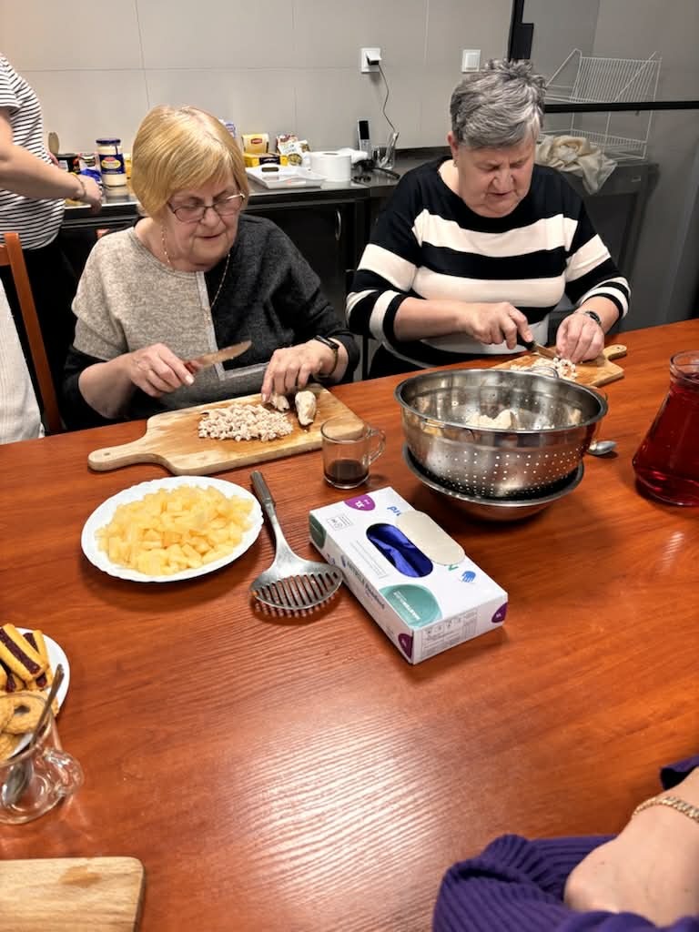 Robiliśmy ozdoby wielkanocne, ćwiczyliśmy jogę, a na zumbie było dużo ruchu i śmiechu. W kuchni też nie próżnowaliśmy – smażyliśmy faworki i robiliśmy wspólnie sałatkę. Jak zawsze przy takich okazjach – było smacznie i bardzo towarzysko.